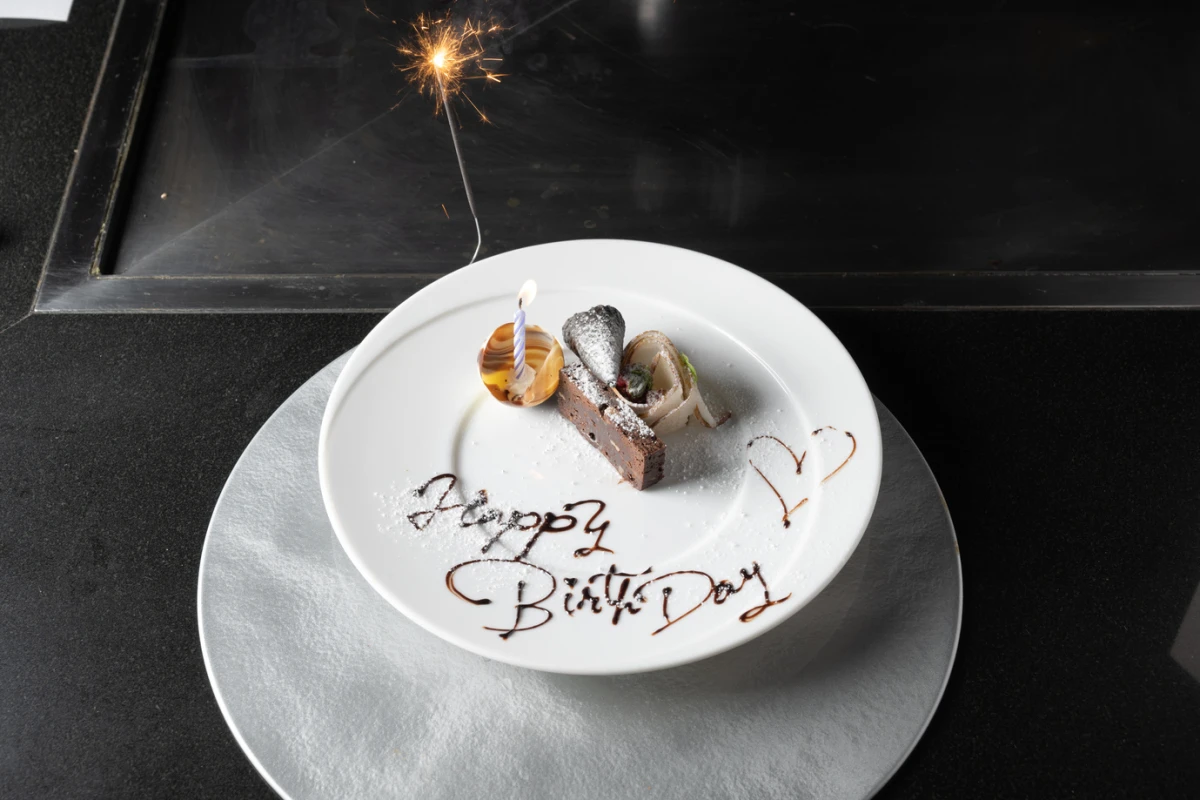 【アニバーサリープラン in 北新地】お肉もお魚も味わえる全7品人気鉄板焼きランチ+乾杯ドリンク+メッセージ入りデザート