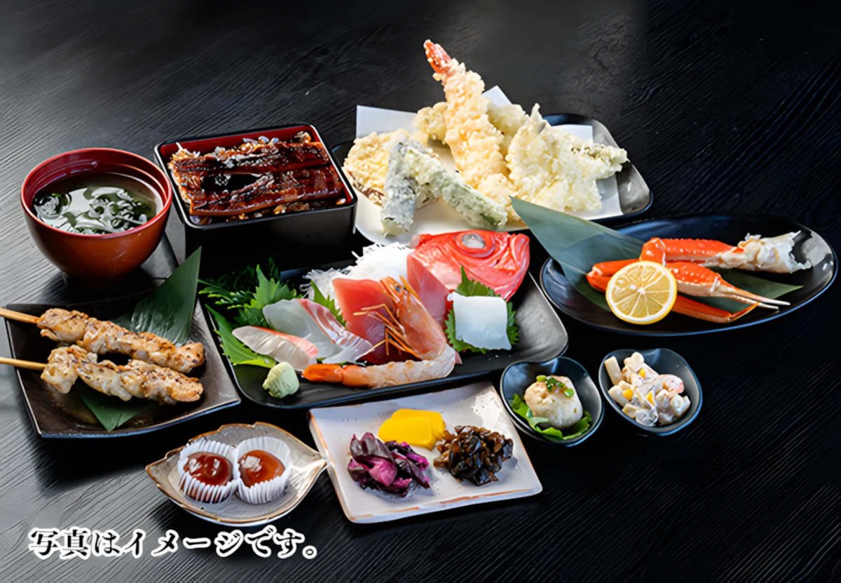 新鮮な刺身やズワイガニ、揚げたて天ぷらを味わえる、選べる3種類のコース+飲み放題