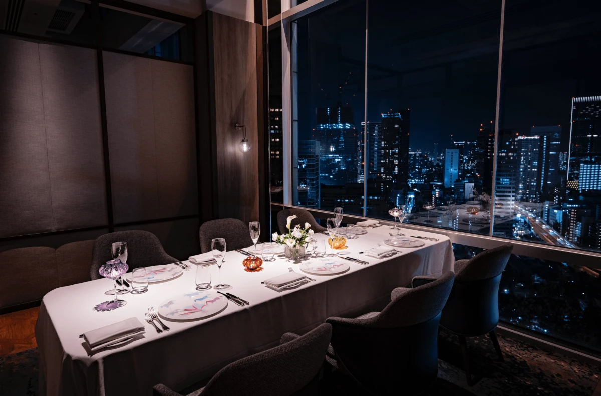 東京の煌めく夜景を背景に、特別なひとときを過ごせるフランス料理店「プライベートダイニング ブリーズ ヴェール / ザ・プリンス パークタワー東京」。33階に位置する店内は、天井まで広がるガラス張りの窓が都会の美しいパノラマを一望でき、夕暮れから夜へと変わる天空のグラデーションもご堪能いただけます。国際コンクールで輝かしい経歴を持つ料理長が厳選食材で創り上げるフレンチの数々と、豊富なワインリストが、かけがえのないひとときをさらに彩ります。