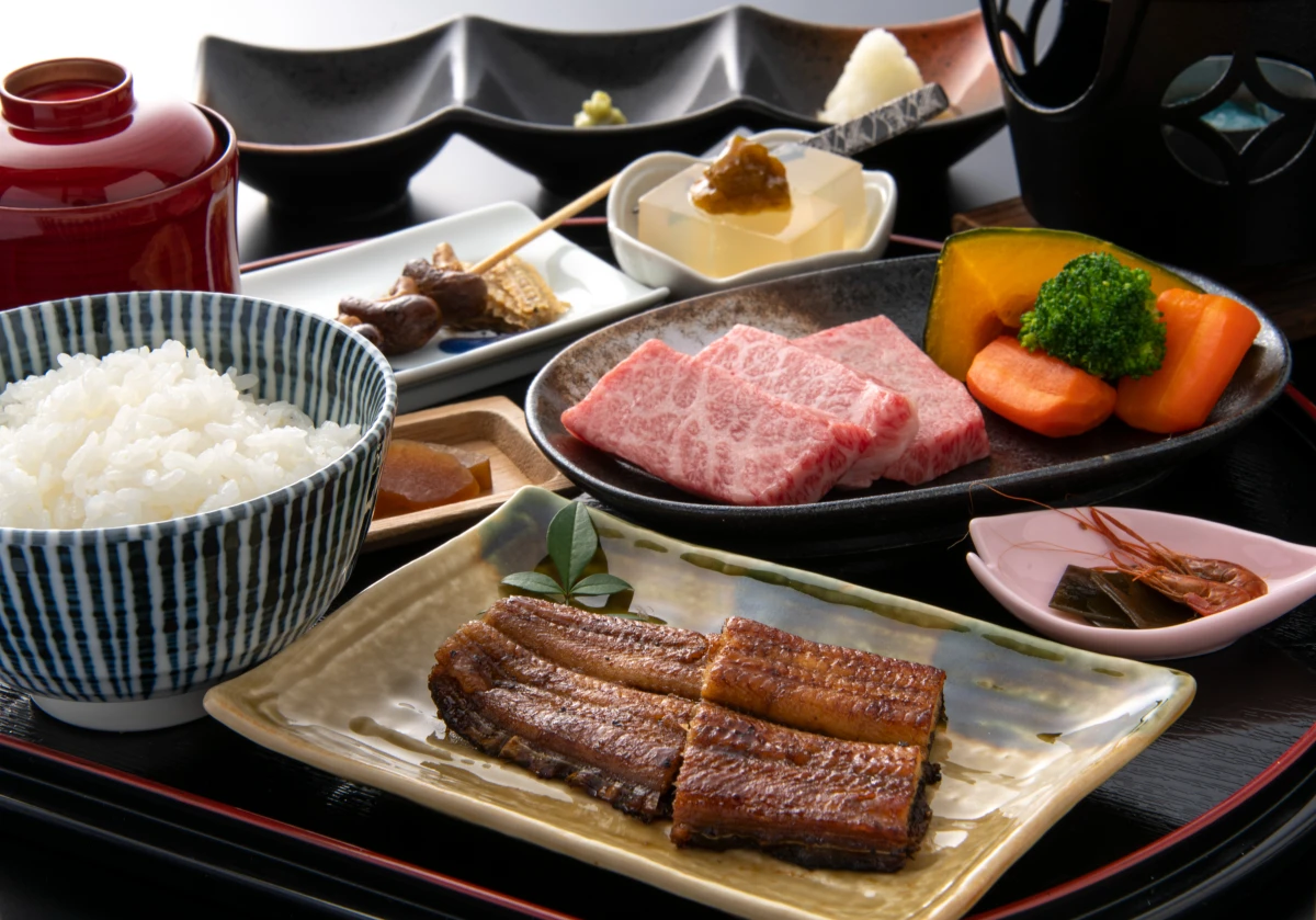 国産うなぎの蒲焼きや若狭牛ステーキなどのフルコース