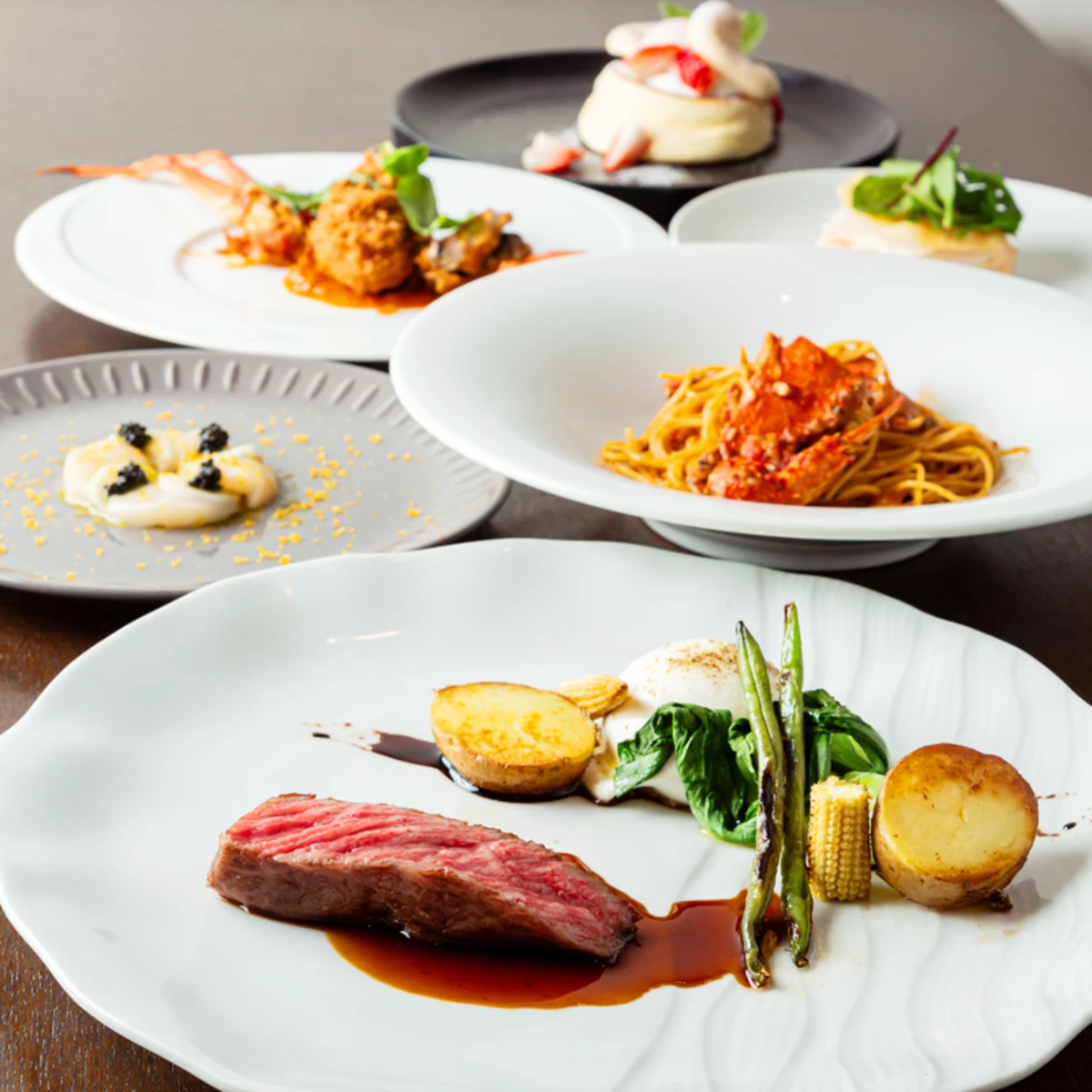 記念日や誕生日には、タラモサラダとチーズガレットに始まり、シェフ特製パスタや国産牛、オマール海老などが楽しめる4種のコースをご用意。最後にはふわしゅわ食感が魅力の台湾式パンケーキと季節のフルーツで、特別な余韻をお楽しみいただけます。プレートにはご希望のメッセージをお入れするので、サプライズ演出にも最適。さらに盛り上がる演出を施したい方には、追加料金でパンケーキタワーもご用意いたします。一皿ごとに驚きと感動をもたらす、美食のひとときをご堪能ください。