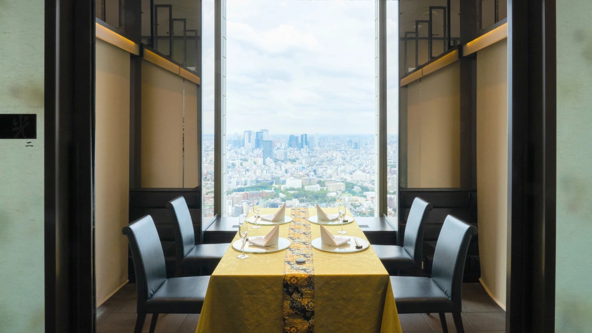 池袋サンシャインシティ 59階、地上220mの天空で、斬新な懐石料理を楽しめる「天空の庭 星のなる木」。「天空」「光」「風」「大地」を表現した和モダンなデザインの店内からは、富士山や新宿の高層ビル群を一望できます。
