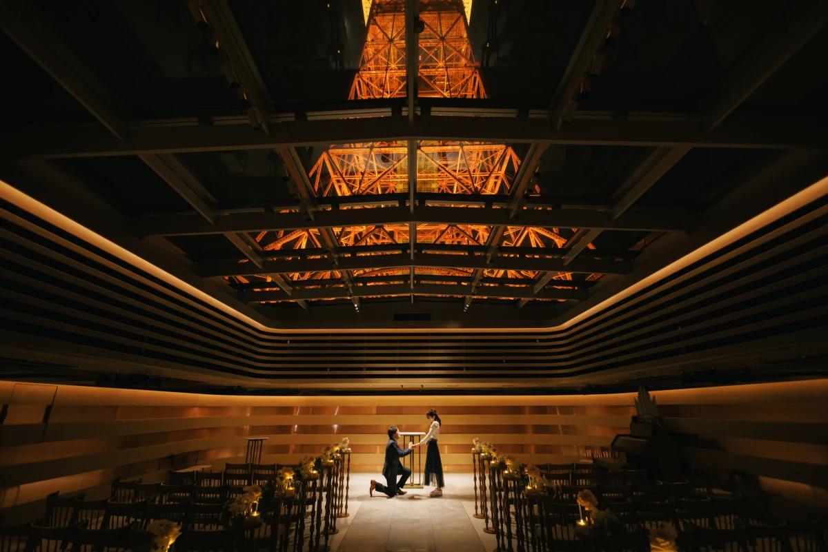 特別な日のためにこだわりぬかれたこちらのプロポーズプランでは、東京タワーの真下にあるチャペル使用、プロポーズプランナーによる完全サポートなど、細部にわたる心配りで、大切な瞬間を最高の思い出に変えます。