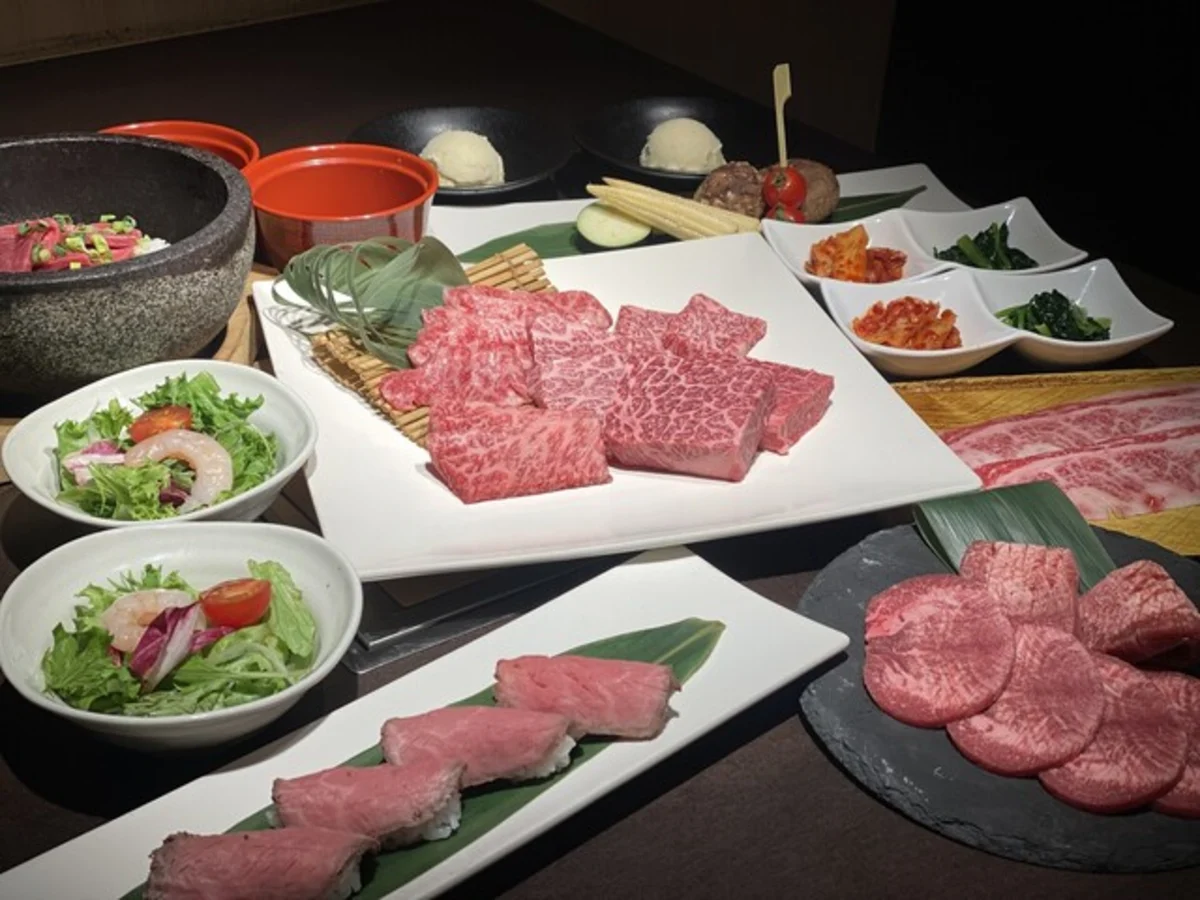 和牛の仕入れから解体まで料理長が一貫して行い、一頭買いすることで希少部位も余すところなくご提供いたします。「焼肉極上コース」では、厚切り和牛の盛り合わせから焼きしゃぶまでバラエティ豊かな全10品を心ゆくまでご堪能ください。