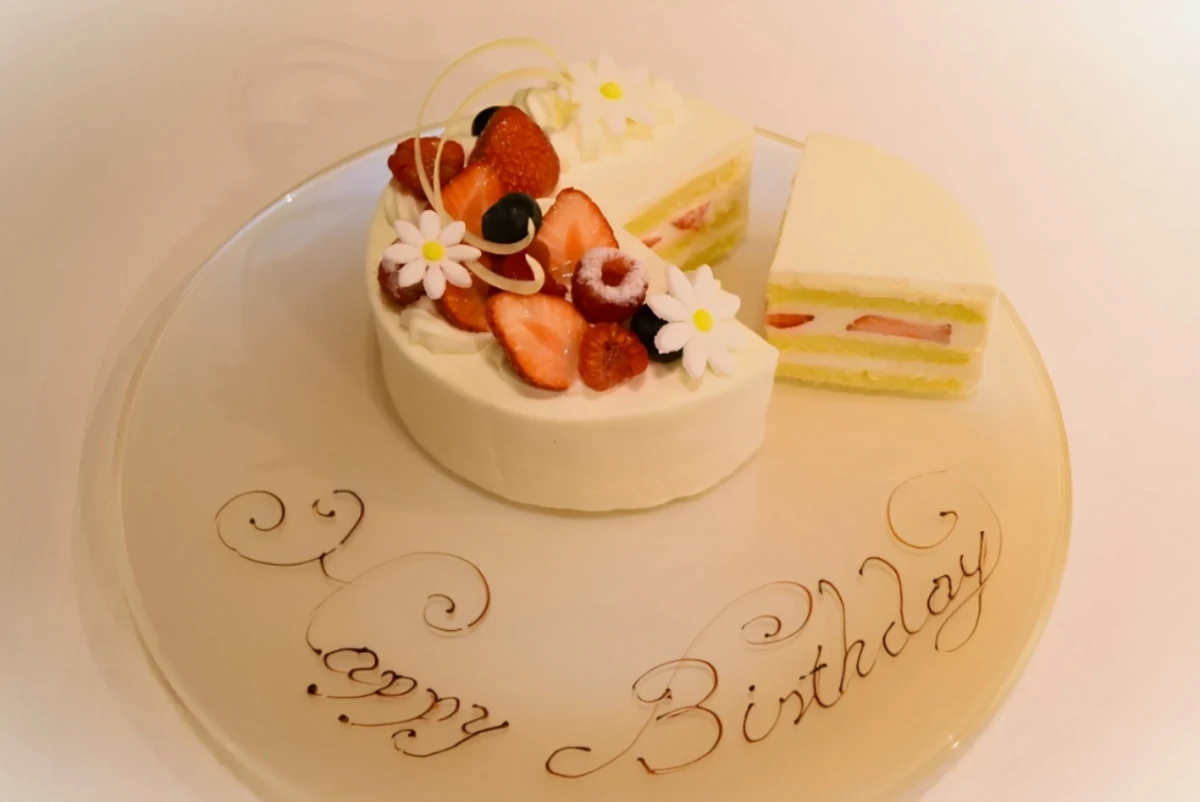 見た目も可愛らしく華やかなホールケーキをご用意いたします。プレートに添えるメッセージ(20文字程度)は、ご予約時にお知らせください。