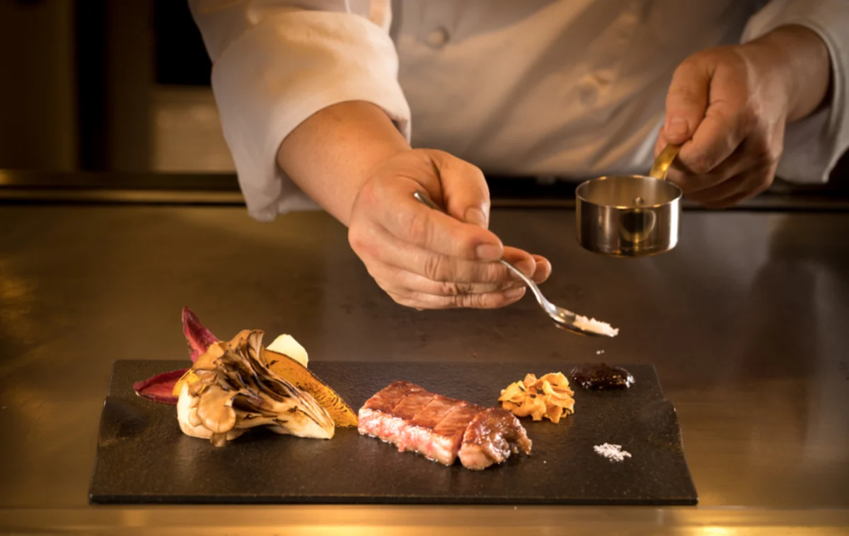 ご用意するのは、シェフのこだわりが光る鉄板焼の贅沢コース。「雅コース」では、ホテル総料理長が目利きしたA5ランク黒毛和牛を存分に味わえる至福の内容に。「紅華コース」では、特選黒毛和牛に加えて新鮮な海鮮も織り交ぜた、華やかでバランスのとれた構成が魅力です。どちらも最初の一杯にふさわしい乾杯ドリンク付き。しっとりとした味わいの地酒や、香り豊かな能登ワインなど、地元ならではの一杯を選ぶ楽しみも。