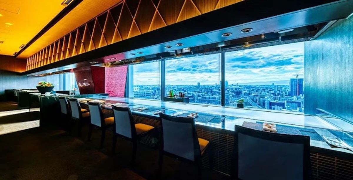 なんば駅徒歩1分、ホテルモントレグラスミア大阪に位置する「鉄板焼 神戸」。地上22階の非日常空間へ一歩足を踏み入れると、開放感たっぷりの窓ガラス越しには、大阪の街並み一望する贅沢な眺め。心ほどける特別な時間が、ゆったりと流れていきます。