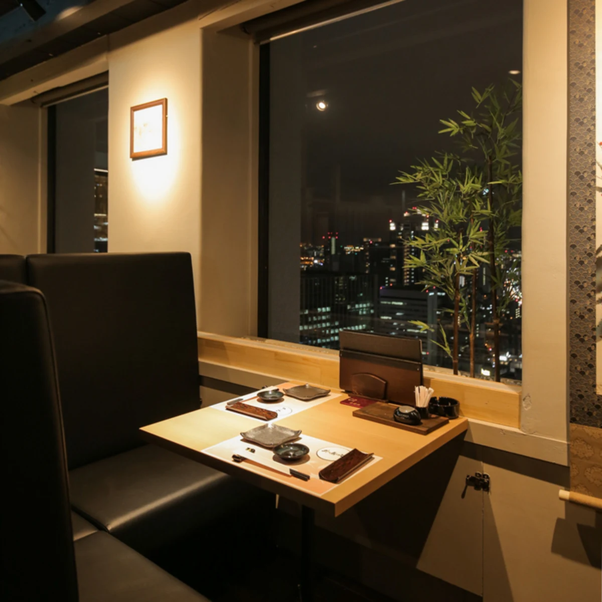 リラックスしながらお食事や会話を楽しめる、落ち着いたお席へご案内いたします。眼下に広がる美景を、ごゆっくりお楽しみください。特別感あふれる雰囲気は、32階という高層階ならでは。大人なカップルのデートに最適です。