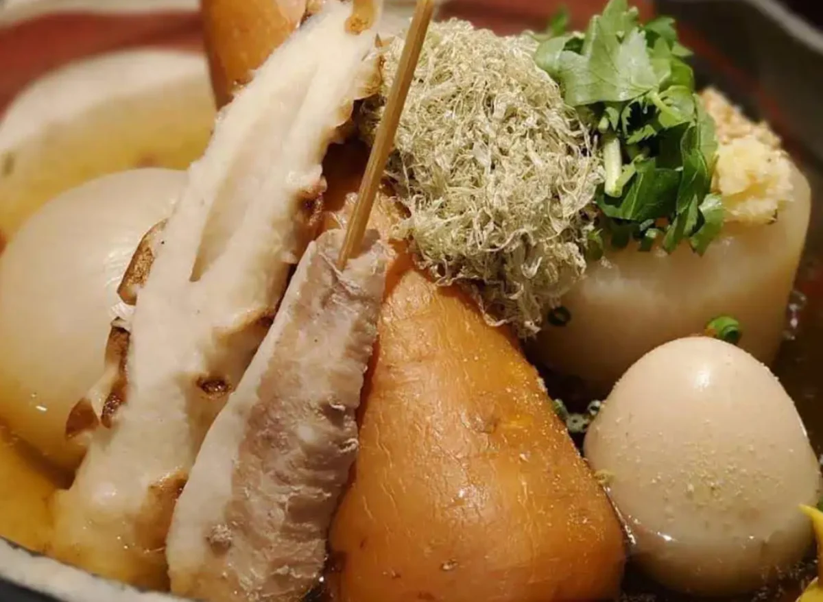 お祝いの席を彩るのは、旬の恵みをふんだんに取り入れた「四季を楽しむおまかせコース」。契約農家から毎朝届く新鮮な野菜や、自家製の練り物を、静岡県御前崎産の特選上花鰹節からとった琥珀色のお出汁でじっくりと炊き上げたおでんは、心と身体にやさしく染み渡る逸品。職人の技が光る繊細な味わいが、晴れの日の席に温かみと品格を添えます。