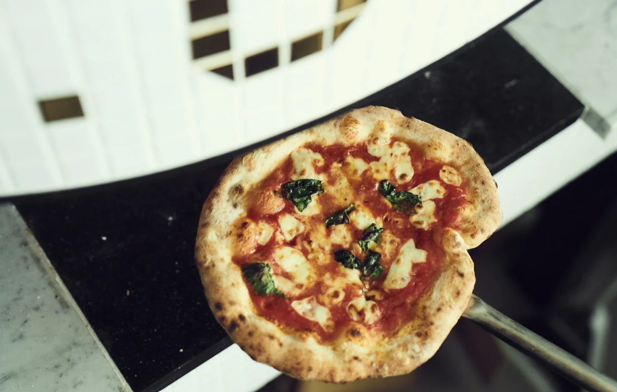 「薪窯イタリアン it.oven」は、西長堀駅から徒歩2分、広々としたラグジュアリーな空間が広がる店内は、まるで映画のワンシーンのよう。天井高4mを超える開放感あふれる店内がロマンチックな雰囲気を演出しています。