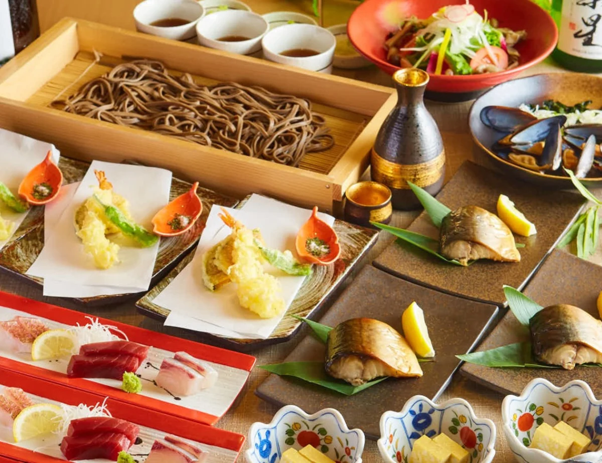 記念すべき夜におすすめなのが、旬の食材を一度に堪能できる大人数のお祝いディナーコース。仙台市場直送の【鮮魚刺し身盛り】や【焼き魚】【海老と野菜の天ぷら盛り】など、新鮮な旬の味覚を存分に楽しめる全7品をご用意しています。