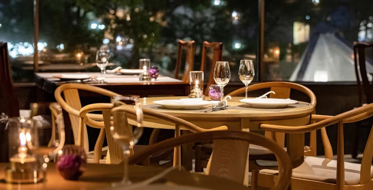 お席は、ゆったりとしたテーブル席へご案内いたします。モダンとエレガンスが調和した洗練空間は、特別な日のお祝いに最適。落ち着いた雰囲気の中、和やかなご宴席となることでしょう。
