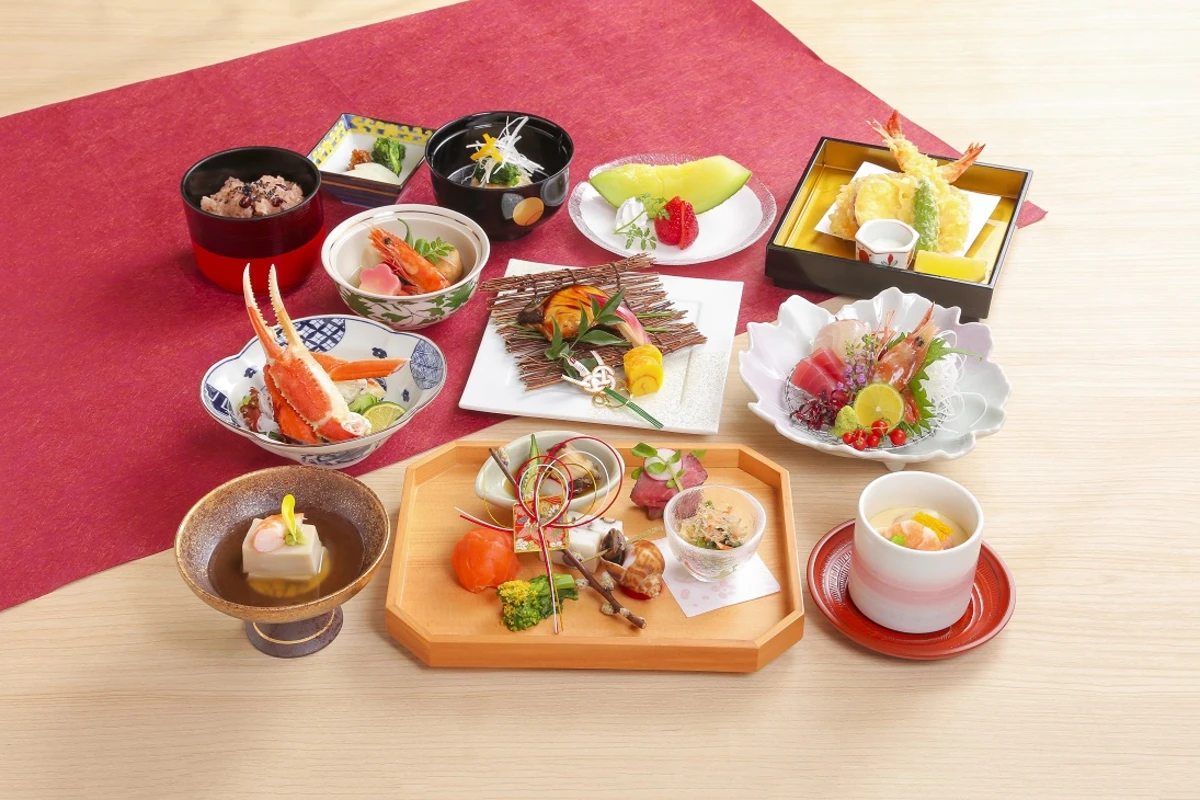 お食事は、四季折々の旬の食材を活かした華やかなお祝い会席を、3種類の中からお選びいただけます。伝統ある割烹料理を継承するお料理は、素材本来の美味しさを極限まで引き立てる上品な味に仕上げております。一品一品細やかな工夫を施した料理は、どなたにもお楽しみ頂ける内容となっております。