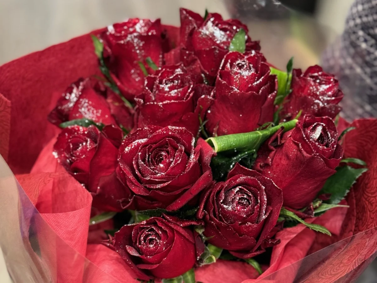 ラメ付きバラ11本の花束