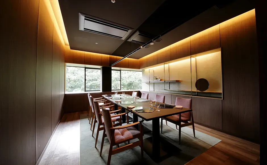 アートホテル小倉 ニュータガワの庭園内に佇む「隠れ家 つつじ」。店内からは、約700坪の百年庭園を一望でき、四季折々に表情を変える美しい景観とともに、贅沢な美食のひとときをお楽しみいただけます。完全個室のプライベート空間では、自然と会話も弾み、心温まる祝宴となることでしょう。