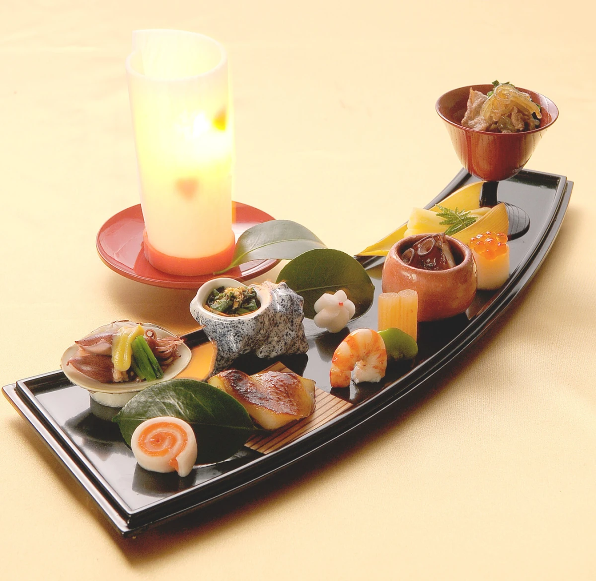 料理長厳選の素材の旨味を活かした繊細な味付けが特徴の高砂懐石コースをご提供いたします。日本料理の伝統と革新が見事に融合した逸品の数々が、会食の場を彩り、心温まるおもてなしを感じさせます。