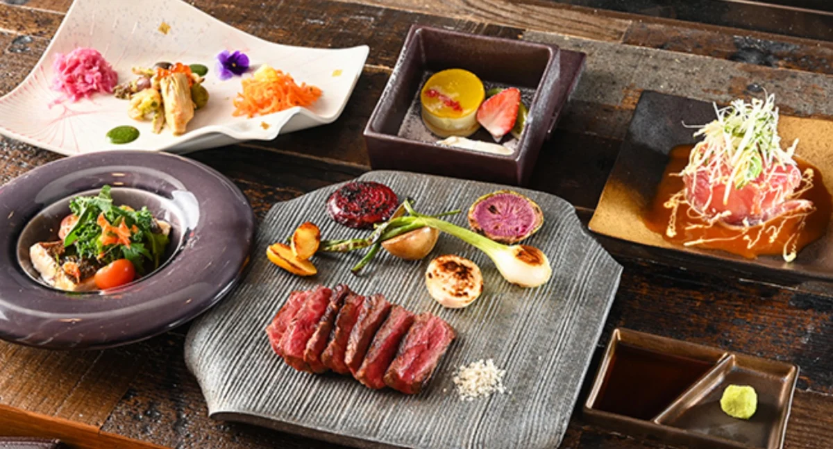 「ラフ+たす」の魅力は、何と言っても厳選された和牛や旬の有機野菜を使用した鉄板焼きです。特におすすめの「美笑牛」を使ったステーキは、肉質の良さが際立ち、旨味たっぷりの赤身と脂が絶妙なバランスを見せてくれます。また、鮮魚の鉄板焼きや季節の前菜など、贅沢な食材を使用したコース料理が堪能できます。ソムリエ厳選の世界各国のワインとのペアリングも楽しめ、ワインとの相性を考えた料理が一層美味しさを引き立てます。