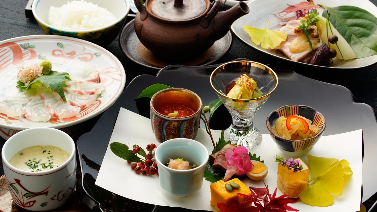 お食事は、季節の恵みをふんだんに取り入れた、長寿祝いにふさわしい懐石コースをご用意。お祝いのひとときを彩る乾杯用スパークリングワインもご提供いたします。心温まる語らいのひとときを、美しい料理とともにお過ごしください。