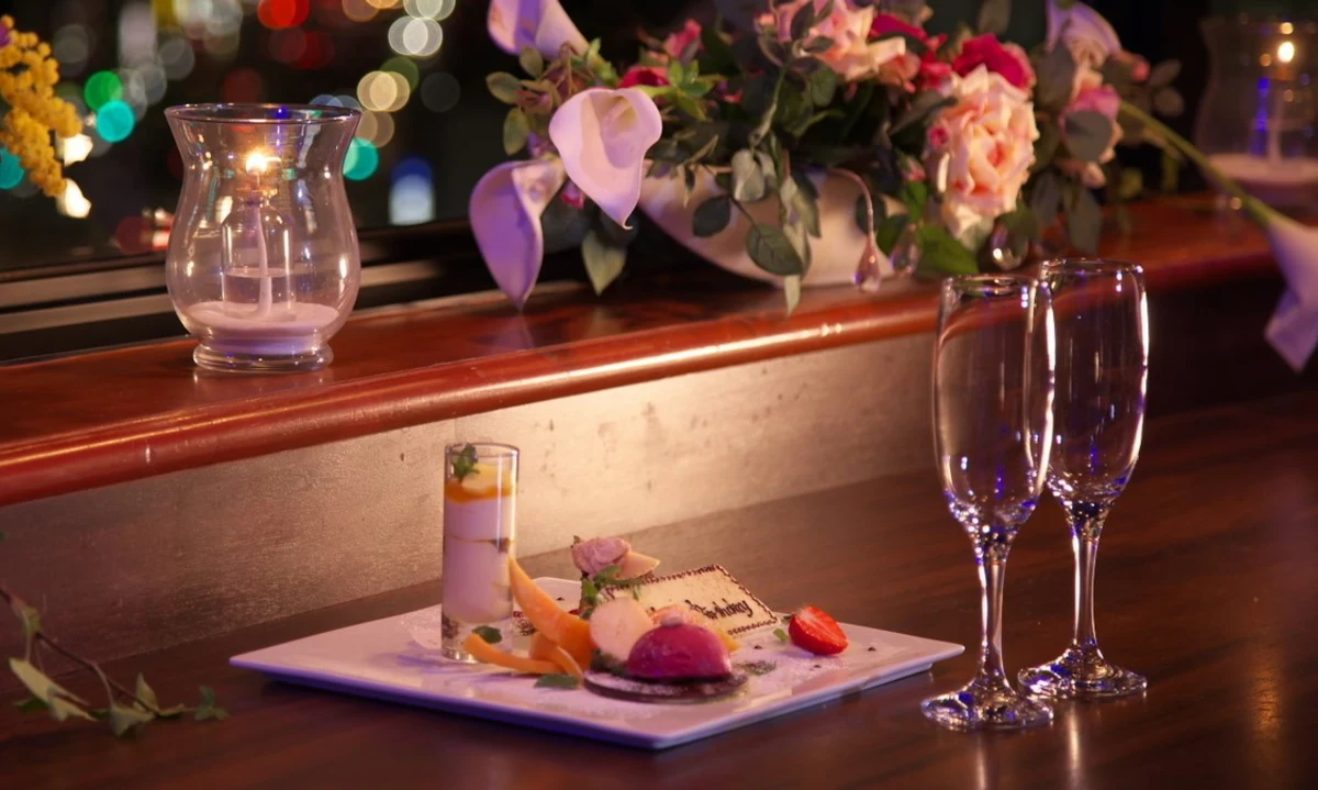 アニバーサリーにふさわしい豪華フレンチとロマンチックな夜景×花束やギフトでお祝いのサプライズを演出(有料)