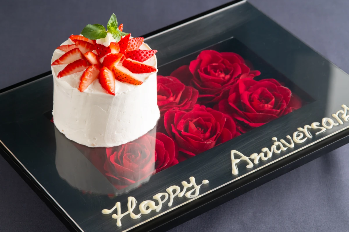 また、乾杯用シャンパン、メッセージを添えたホールケーキが記念日をより華やかに演出します。大切な方の笑顔溢れる、至福のひとときとなること間違いなしです。