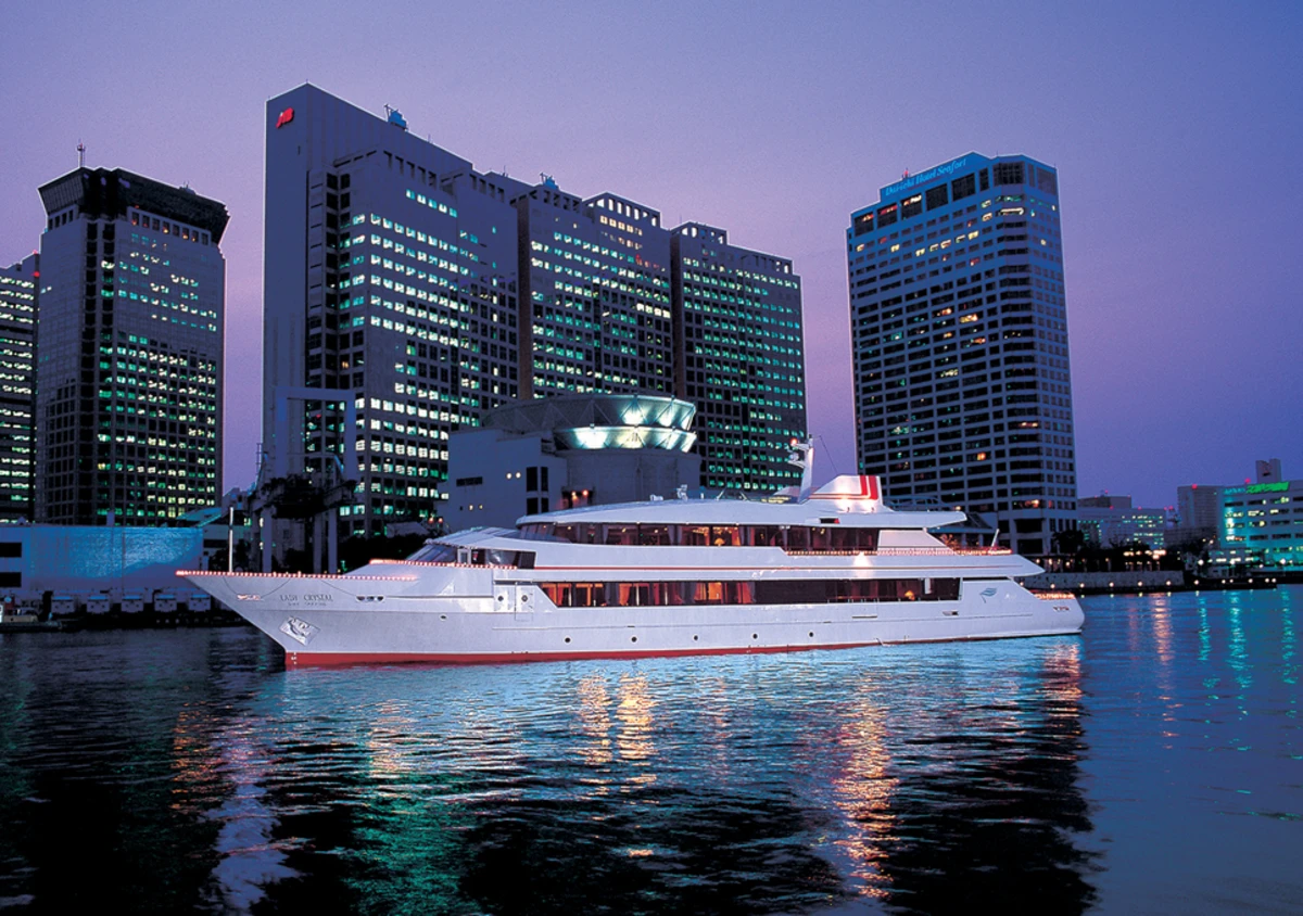 - ※陸上クラブハウス(レストラン)にてお食事をされた後に、ナイトクルーズにご乗船いただくプランです。※来店可能時間・クルーズ運航時間は変更になる場合がございます。ご予約の際に必ずご確認ください。※本プランは、お子様連れ(0歳~11歳)のご入店をご遠慮いただいております。※お席の指定は承っておりません。※クルーズ中は自由席です。※食物アレルギーをお持ちのお客様は、ご予約時に直接お電話でご相談ください。ご来店当日は承ることができません。また、出汁に使用される玉ねぎ・にんじん・セロリなどの香味野菜にアレルギーがある場合はお料理の提供が出来かねます。