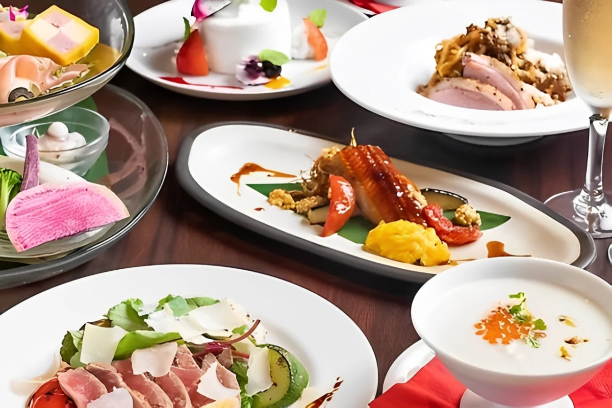 本プランでは、和と洋のエッセンスを取り入れた創作フルコースディナーをご用意。旬の素材を活かした前菜に始まり、肉・魚・野菜をバランスよく取り入れたメインディッシュ、そして見た目にも華やかなデザートまで、五感で楽しめる内容です。