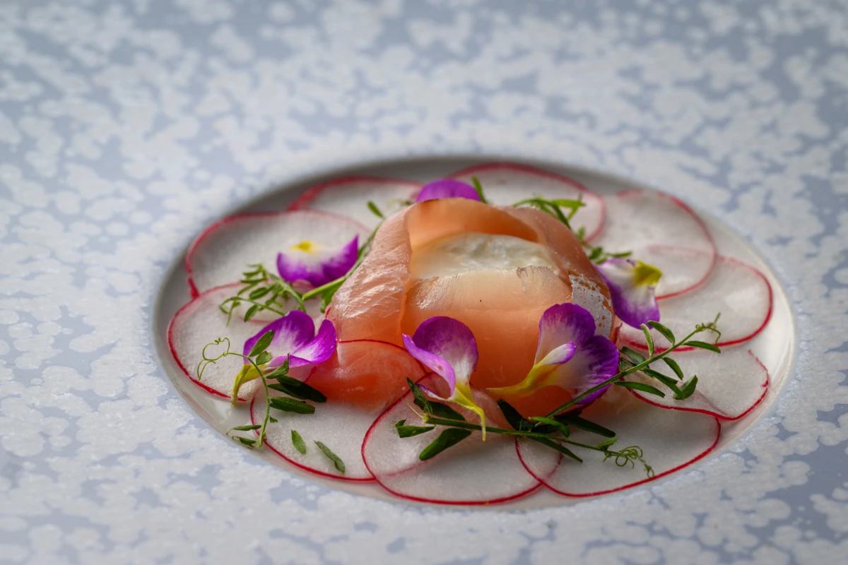 魚を中心としたフルコースの数々を堪能できる贅沢な本プラン。その日の魚の入荷に合わせて組み立てられる、シェフのお任せフルコースディナーは、9皿前後の多彩な料理が楽しめます。メイン料理は肉料理になり、食後にはホールケーキでサプライズを演出します。ご希望に応じて、チョコレートペンでメッセージを添えることができます。