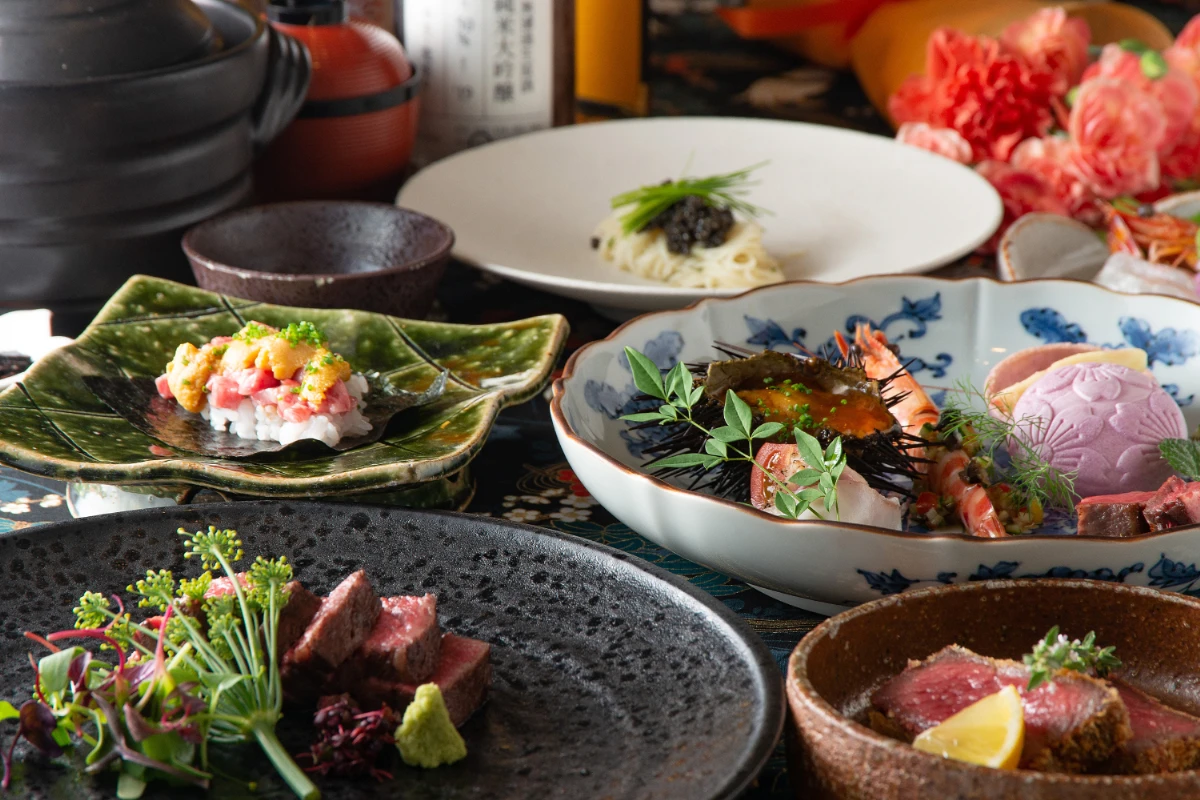 特別なアニバーサリーにふさわしい、厳選された和牛と高級食材を堪能できるコース料理をご用意。それぞれ趣向を凝らした逸品が並び、炭火焼や出汁を活かした料理など、和の職人技が光る一皿一皿が味わえます。