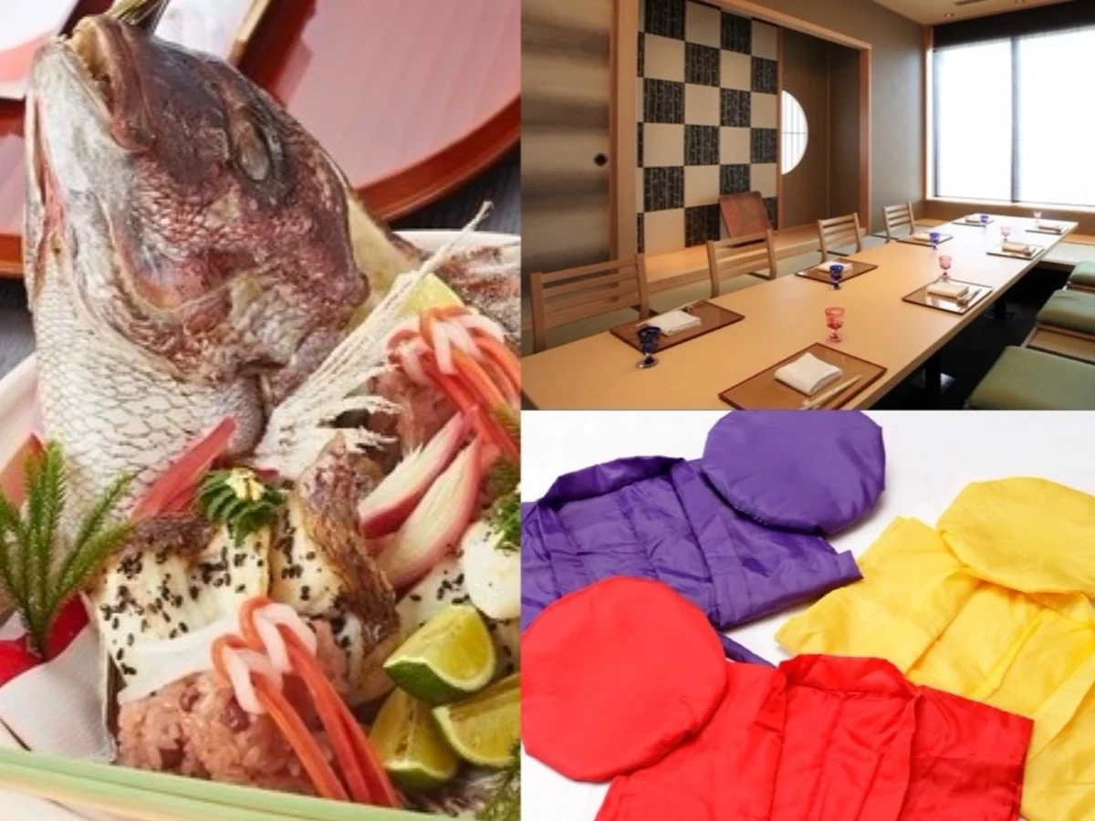 【6〜14名様★和個室確約 / ご長寿お祝いプラン】お祝い鯛赤飯を含む極上お祝い会席+乾杯用ドリンク+メッセージを添えたデザート+記念フォト+ちゃんちゃんこ無料貸出★なんば駅徒歩1分・ホテルモントレグラスミア大阪22階