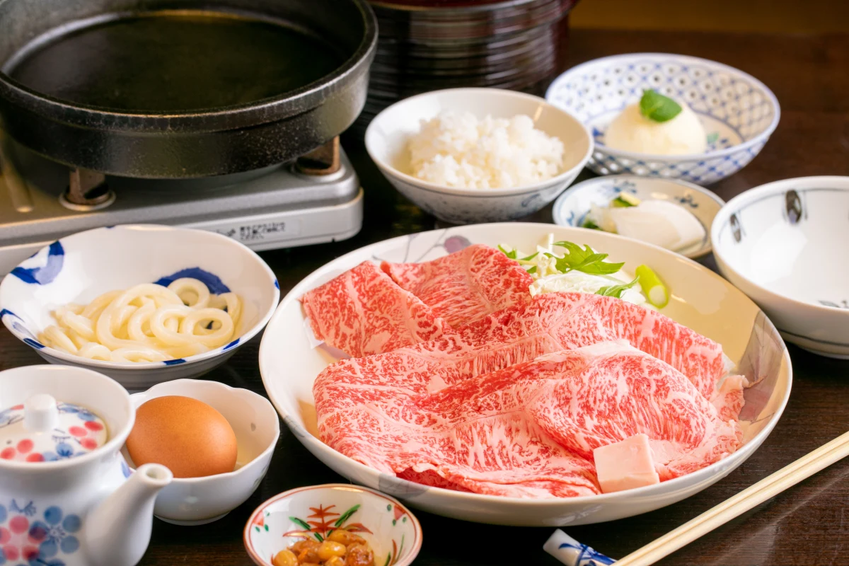 老舗の個室で味わう霜降り牛と選べる鍋の贅沢ランチ×有料オプションでサプライズ可能