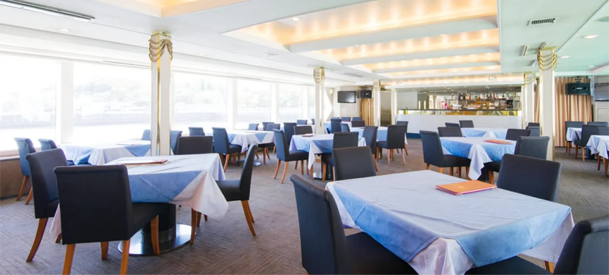 港町・横浜の特等席で、輝く海や美しい夜景を見ながら至福のひとときを過ごせる豪華な船上レストランです。