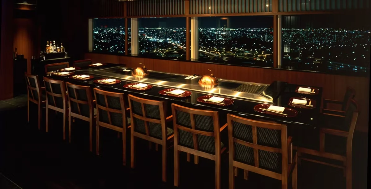 洗練されたホテル内レストランで鉄板パフォーマンスと絶景を堪能