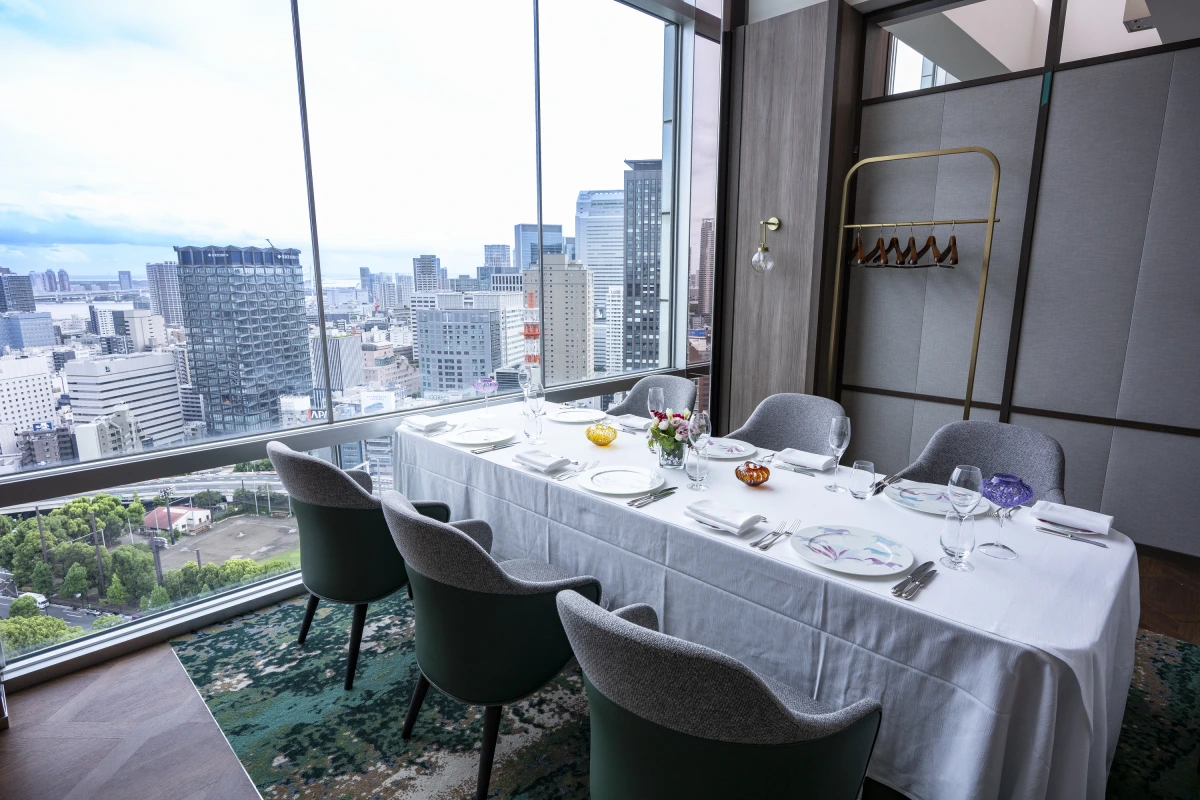 東京の煌めく夜景を背景に、特別なひとときを過ごせるフランス料理店「プライベートダイニング ブリーズ ヴェール / ザ・プリンス パークタワー東京」。33階に位置する店内は、天井まで広がるガラス張りの窓が都会の美しいパノラマを一望でき、夕暮れから夜へと変わる天空のグラデーションもご堪能いただけます。国際コンクールで輝かしい経歴を持つ料理長が厳選食材で創り上げるフレンチの数々と、豊富なワインリストが、かけがえのないひとときをさらに彩ります。