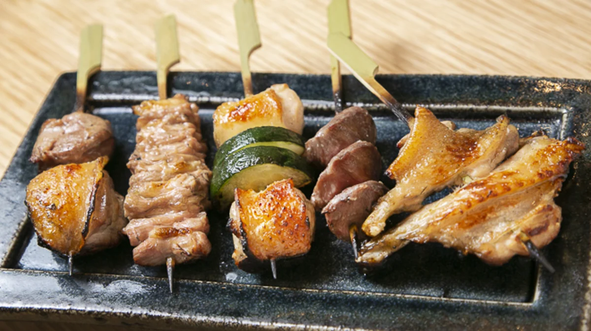 この特別なディナーコースは、前菜から始まり、上品に焼き上げられたお任せ串焼き、そして名物のミニ親子丼や鶏そぼろ丼と続き、全15品の贅沢なラインナップが揃います。地鶏と旬の野菜を使用した料理は、どれもここでしか味わえない逸品。特に、日本三大地鶏の一つである比内地鶏を使用した焼鳥は、口の中で広がる豊かな味わいが特徴です。