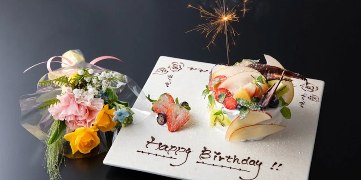さらに、ご希望のメッセージを入れたアニバーサリーケーキと、素敵な記念日を華やかに演出するミニブーケもプレゼント。大切な方に喜んでいただける記念日をお約束いたします。