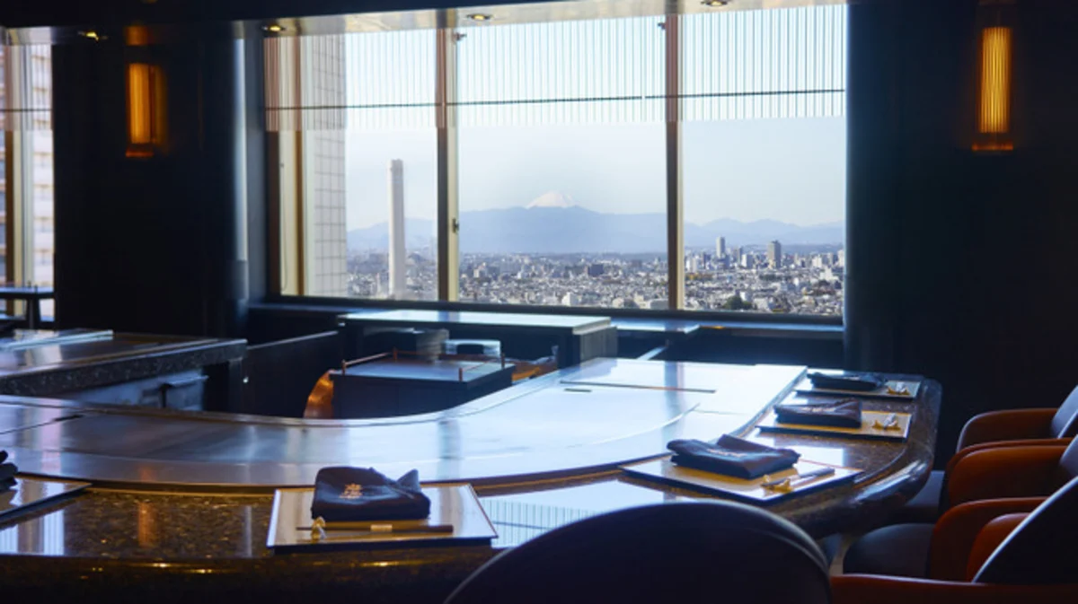 お席は、目の前で調理するライブ感満載かつホテル最上階からの東京の美しい景色を望むカウンター席へご案内いたします。
