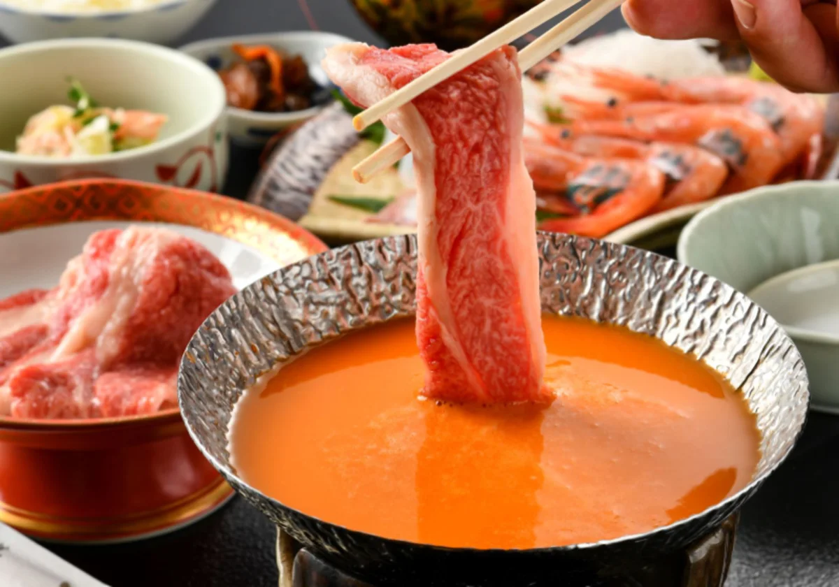 ディナーでは、テレビ東京でも紹介された濃厚で贅沢な「うにしゃぶ」や、とろけるような「和牛霜降り肉のすき焼き」といった、浜・里・山の恵みをふんだんに使った料理をご堪能いただけます。囲炉裏を囲んでのひとときは心まで温かく包み込む特別な体験です。