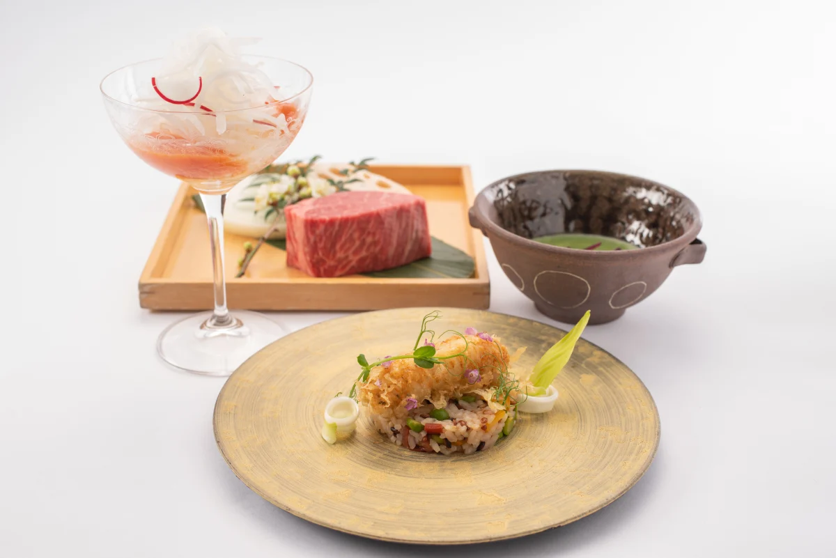 本プランでは、やわらかい赤身を香り高く焼き上げる「特選黒毛和牛」をはじめとした、フルコースのランチをご用意。目の前のシェフの手さばきに魅了され、食してさらに笑顔になること間違いなしです。