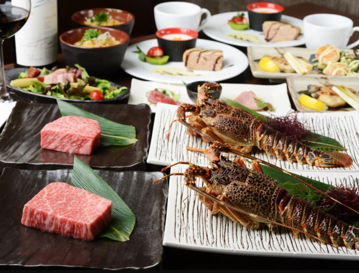 今回ご紹介する「特撰黒毛和牛&伊勢海老会席コース」のメインには、肉質のきめ細やかさととろける旨みで知られるA5ランクの黒毛和牛ステーキ、そしてアメリカンソースで味わう「伊勢海老の丸焼き」が加わり、贅沢なディナーコースが完成します。