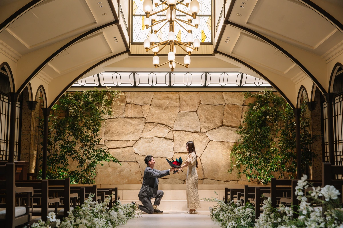 【Anny限定★感動溢れるチャペル貸切プロポーズプラン】400年の歴史ある料亭河文とNYでミシュランを獲得したシェフの技が織りなす至高のフルコース+メッセージ付きデザート★12本のバラの花束&乾杯スパークリングワイン&専属プランナーがサポート★