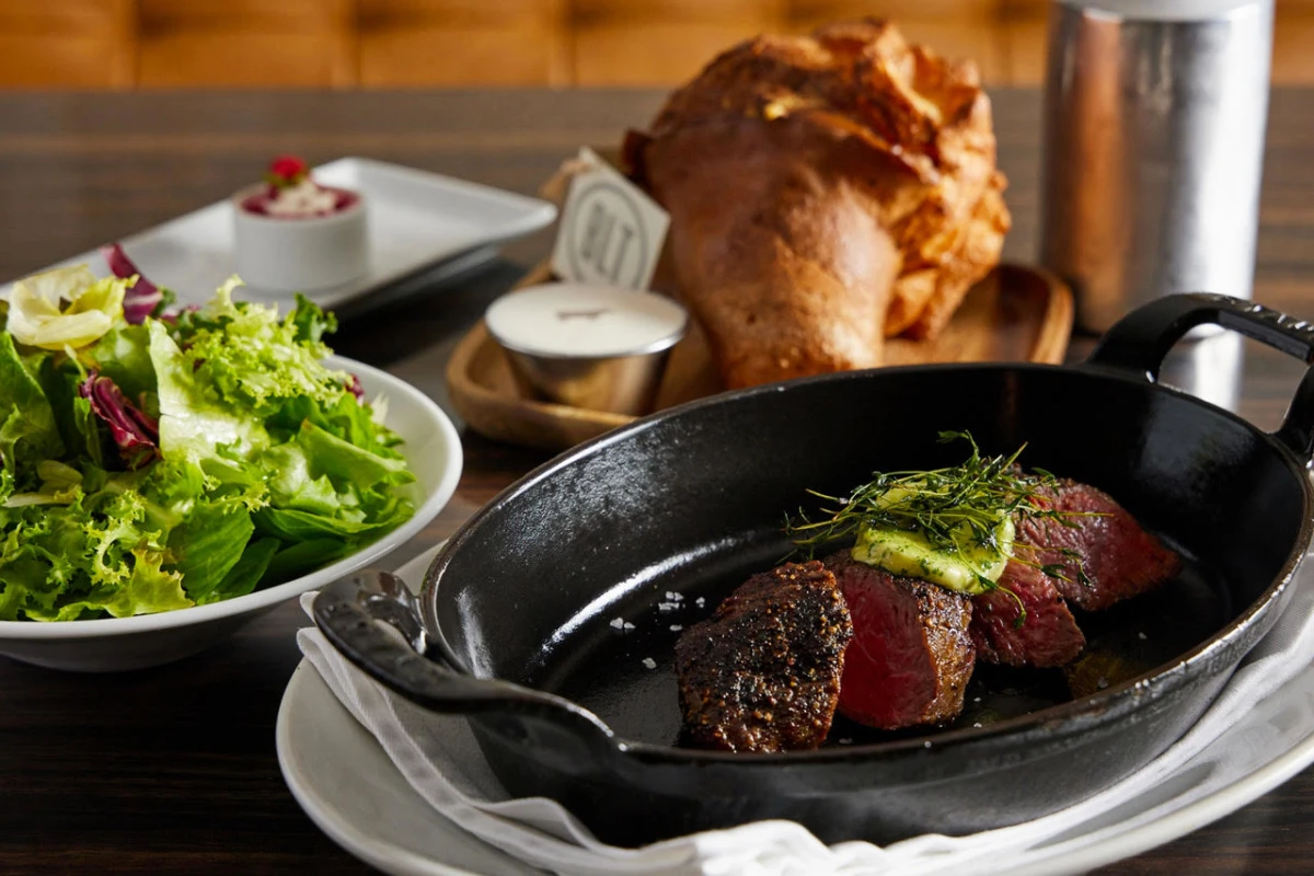 全体の2%しかないUSDA格付け最高位のプライムグレードだけを使用した自慢のTボーンステーキや、高温のグリルで焼き上げるNY仕込みのバーガー、外はこんがり、中はふわふわの「ポップオーバー」などのアメリカ料理をお楽しみいただけます。