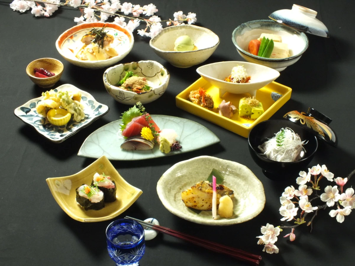 ご用意するお食事は、産地直送の新鮮素材にを使用した豪華会席料理全9品。熟練の板前が心を込めて振舞います。