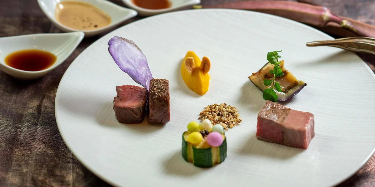そんな洗練された空間で供されるのは、特別な日のために用意されたROUGEコース。福井の四季折々の厳選素材をふんだんに取り入れ、「福井を、美味しく、華やかに」をテーマにした全6品の贅沢なコースです。一皿一皿に宿るのは、ミシュラン星付きレストランで研鑽を積んだシェフの技と情熱。世界三大珍味と福井の旬の味覚が織り成す一品一品は、記念日や特別なひとときにも最適です。