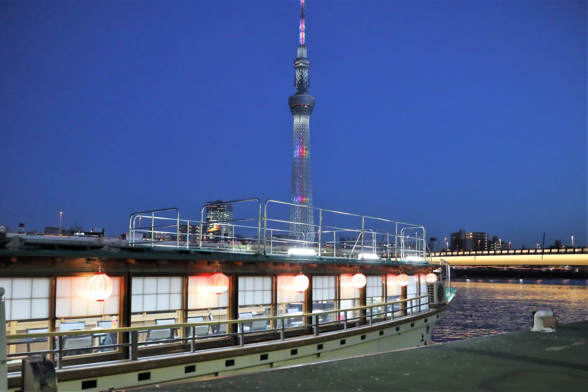 都心の喧騒を離れ、東京湾の絶景を巡る優雅なひとときを。「屋形船 池上」では、木場駅から徒歩6分の桟橋を出航し、レインボーブリッジやお台場、東京タワー、アーバンドック豊洲、スカイツリーなど、話題のスポットをめぐる約120分のディナークルーズを貸切でご提供しています。