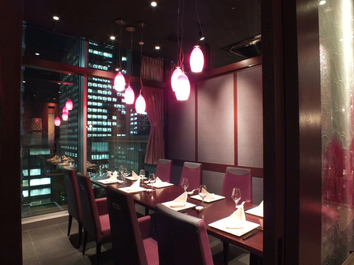 東京駅より徒歩1分のJPタワー6Fにお店を構える中華料理店「過門香 KITTE丸の内店」。紫を基調としたスタイリッシュな店内には、夜景個室や人気の円卓個室を備えております。