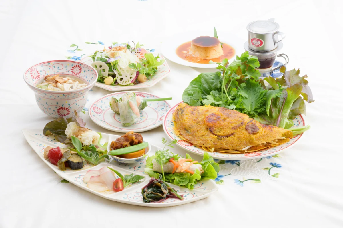 地元の有名農場で育てた新鮮な無農薬野菜を活かしたベトナムフレンチは、2つの料理の魅力が満喫できると大好評。美味しく身体に優しい素材を心ゆくまで堪能できます。