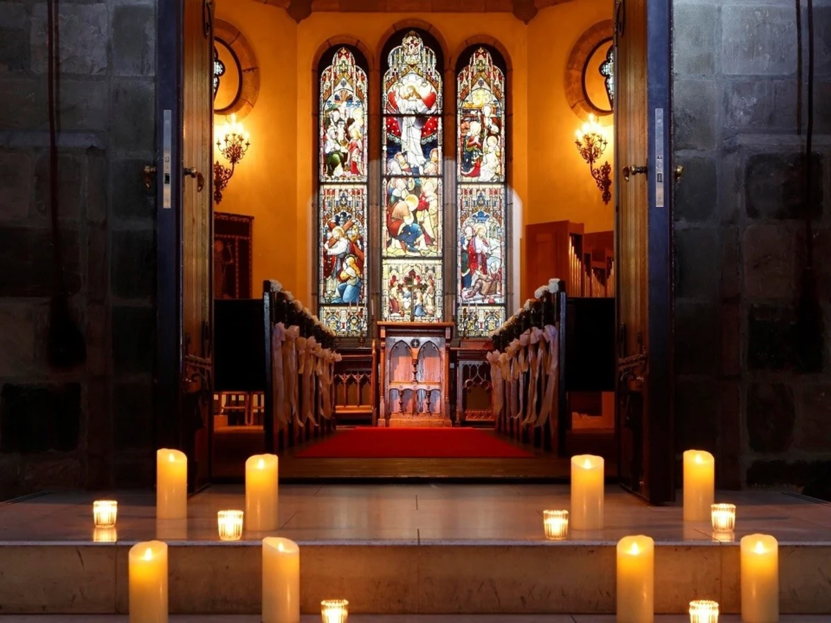 教会内に一歩足を踏み入れると、美しいステンドグラスが目を惹き、魅力高いアーチ型のボールト天井、アンティークのシャンデリア、漆喰仕上げの内壁など、神聖さと温かみを醸し出す、クラシカルな雰囲気が魅力です。一生忘れることのない、特別なプロポーズシーンにぴったりな空間です。