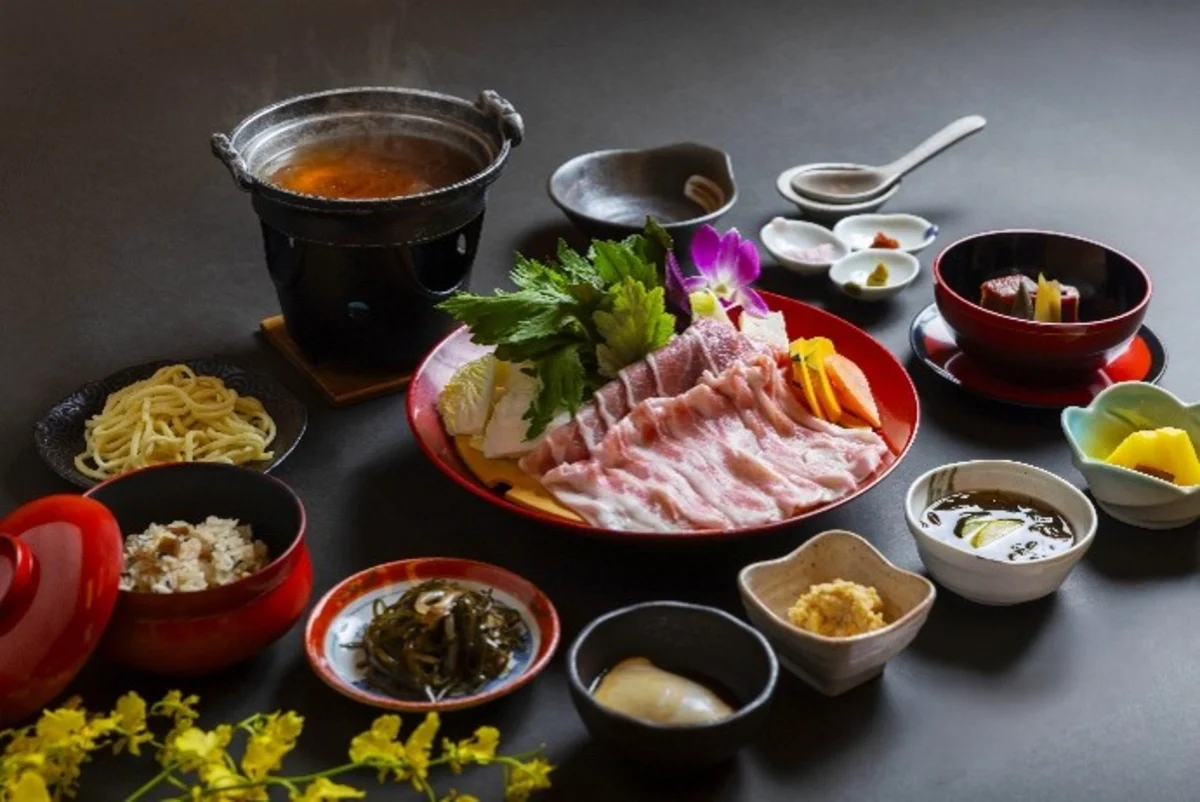 お食事は、金箔入り泡盛付きの金アグー豚しゃぶしゃぶ会席を3種類ご用意しております。郷土の味わいを織り交ぜた、かつて宮廷でも親しまれた美食をご堪能ください。