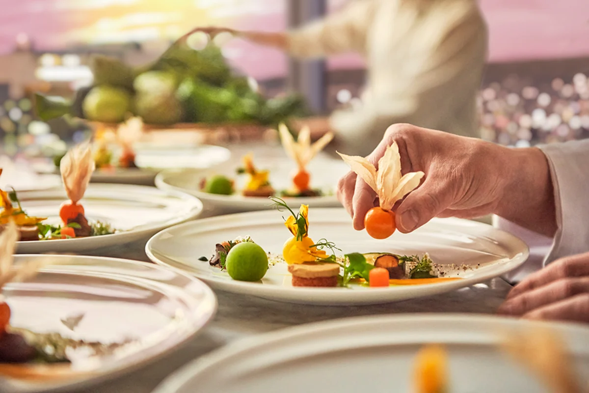 婚礼料理を手掛けるシェフが腕を振るう創作フレンチは、素材の魅力を引き出したシンプルな味わいと、視覚的にも華やかな盛り付けが特徴。大切な記念日にふさわしい、優美で洗練されたひとときをお届けします。