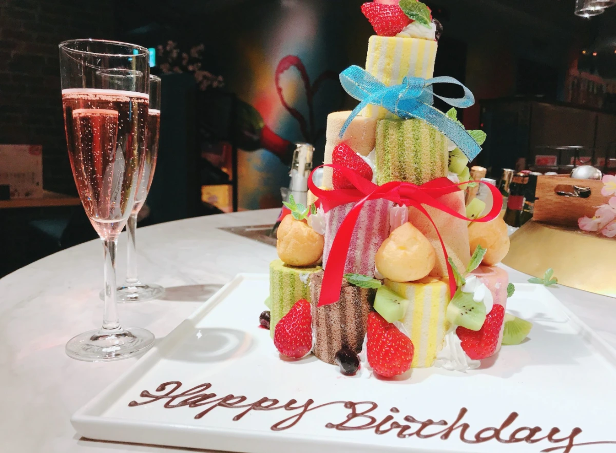 【メッセージ付きロールケーキタワー×アニバーサリープラン】ワインビュッフェ&豪華イタリアンディナー全8品★乾杯スパークリングつき★新宿で心温まるひとときを